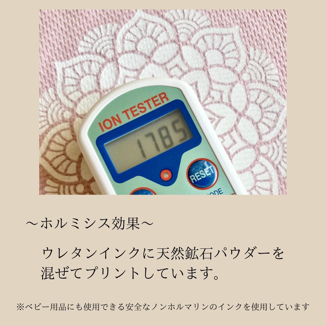 表面に天然鉱石パウダー配合のインクで曼荼羅柄をシルクスクリーンプリントしたものです。